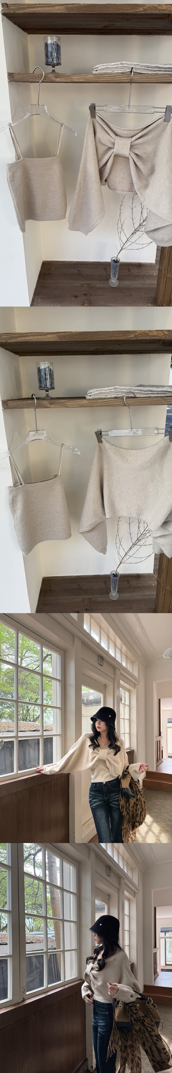 【Z829832】甜美背心+露肩蝴蝶結罩衫