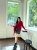 參考範例: 直播主 思思 158cm/42kg 胸圍30吋(77cm) 腰圍24.5吋(62cm) 臀圍32吋(81cm) 商品皆平量(cm) 815 肩寬38 胸寬46 袖長57 衣長52