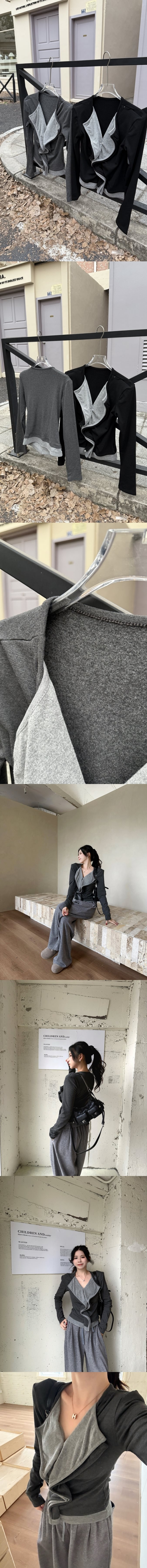 【Z829854】撞色荷葉邊假兩件磨毛長袖