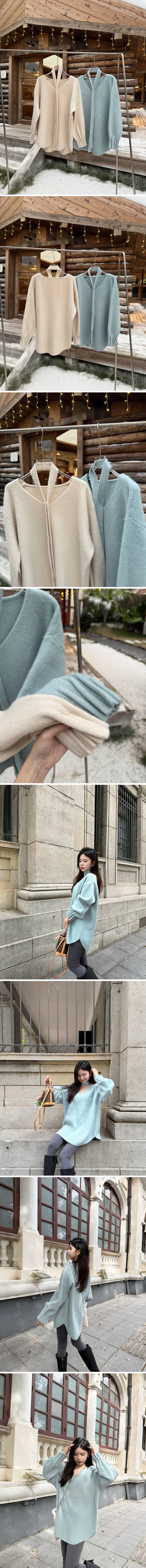 【Z829893】韓系花苞袖飄帶V領針織衫