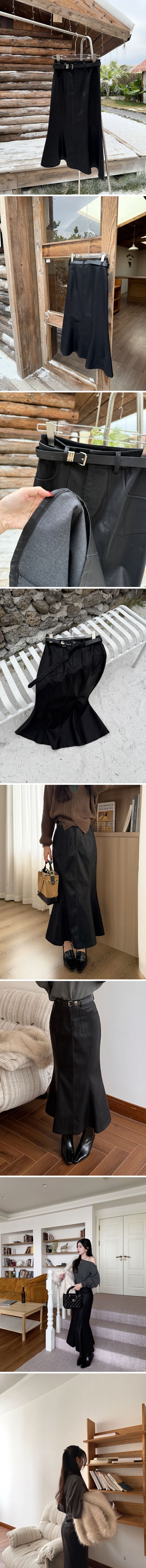 【Z829892】高腰褶皺設計PU皮魚尾裙