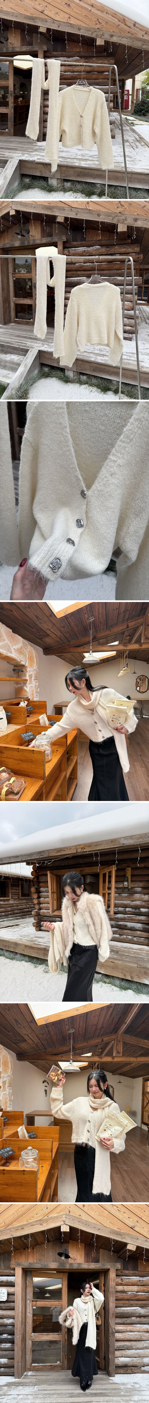 【Z829895】V領排釦針織罩衫(附圍巾)