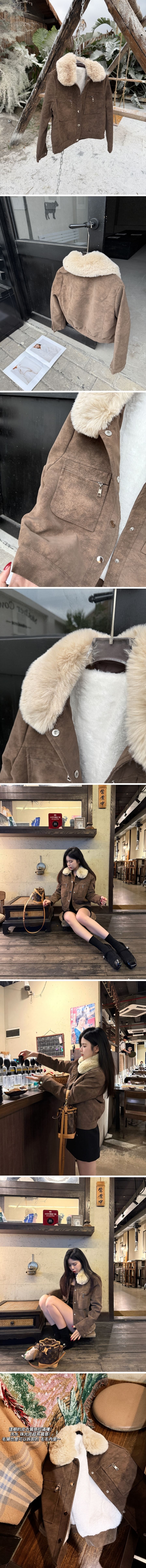 【Z829913】毛領釘釦霧皮短絨夾克外套