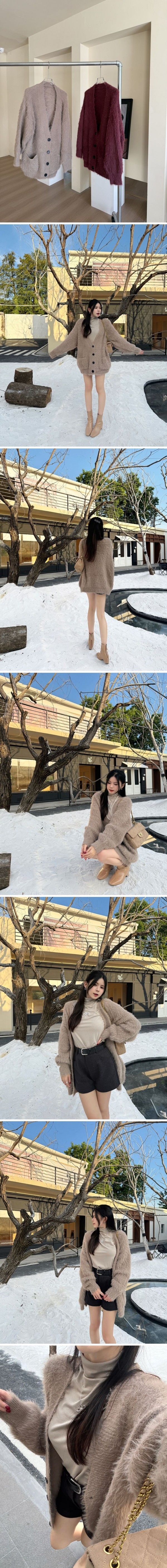 【Z829944】仿水貂毛排釦大V領口袋外套