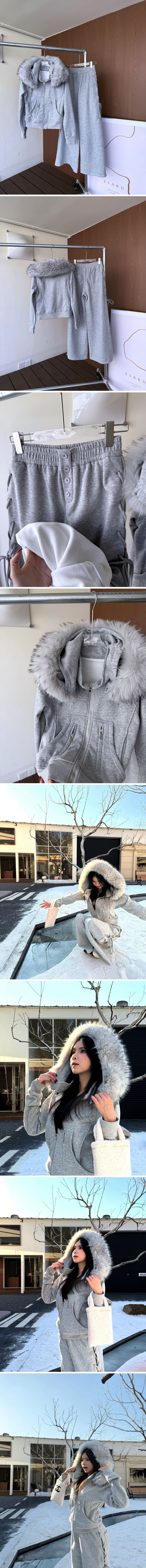 【Z829958】大毛領加絨連帽外套闊腿褲套裝