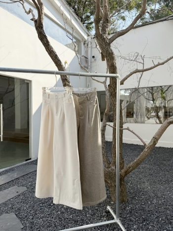 【Z829930】鬆緊腰頭厚磨毛休閒寬褲