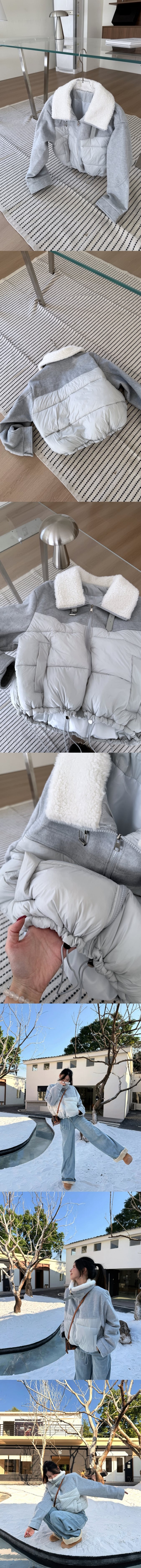 【Z829936】麂皮絨拼接毛領羽絨外套
