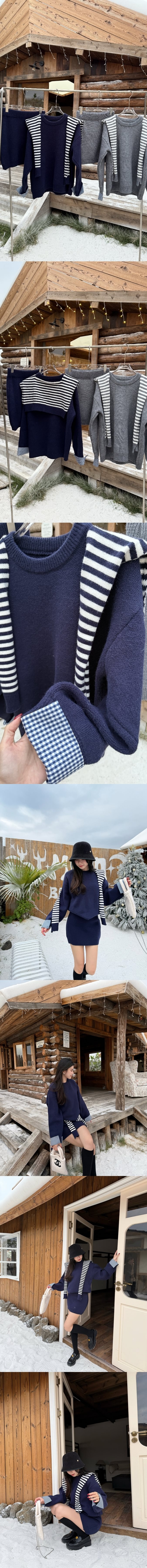【Z829888】條紋披肩圓領毛衣短裙套裝
