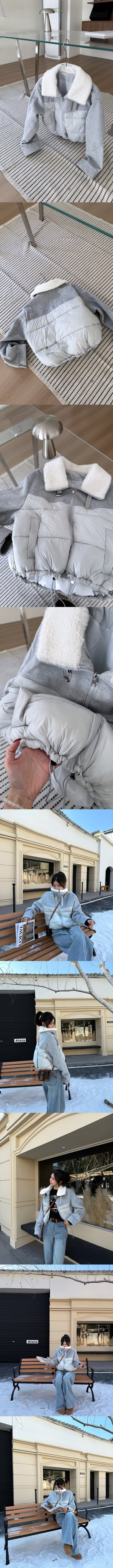 【Z829936】麂皮絨拼接毛領羽絨外套