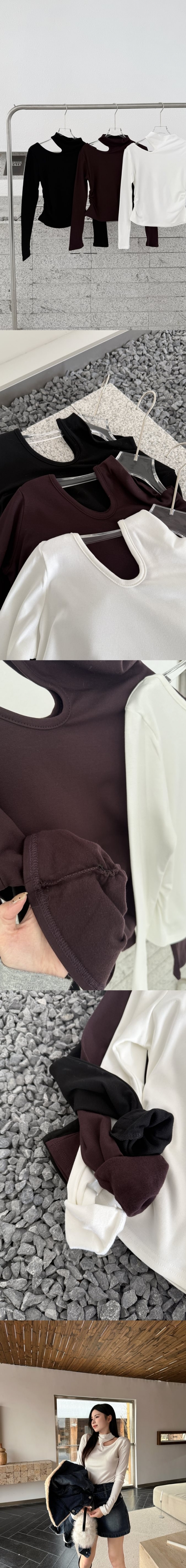 【Z829994】立領加絨露肩設計摺皺長袖