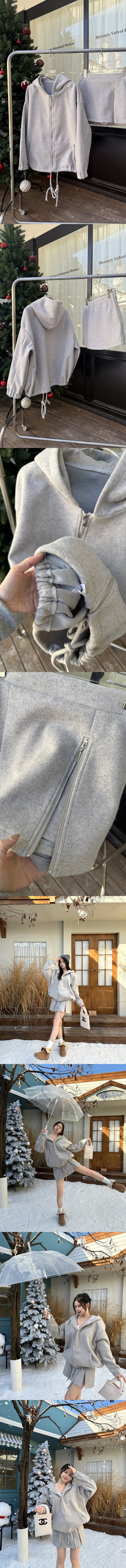 【Z829991】連帽外套側拉鍊毛呢短裙套裝