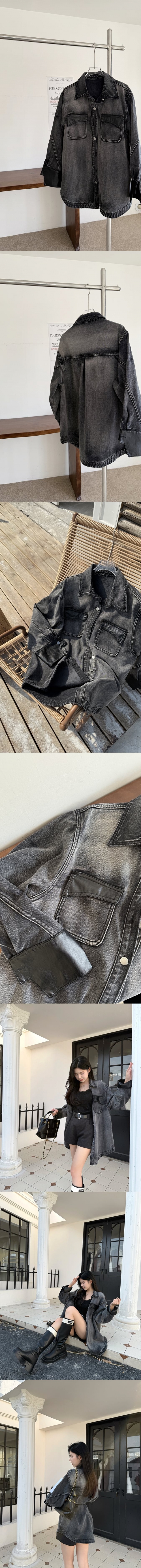 【Z830065】水洗做舊加絨拼皮牛仔襯衫