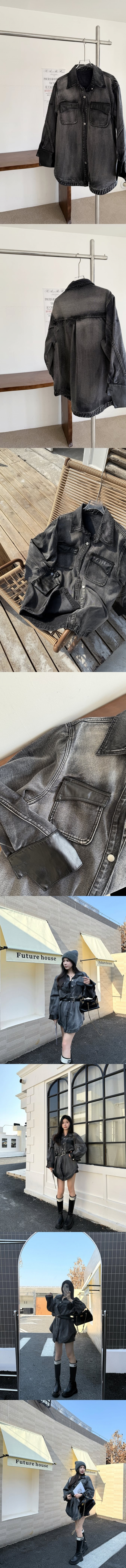 【Z830065】水洗做舊加絨拼皮牛仔襯衫