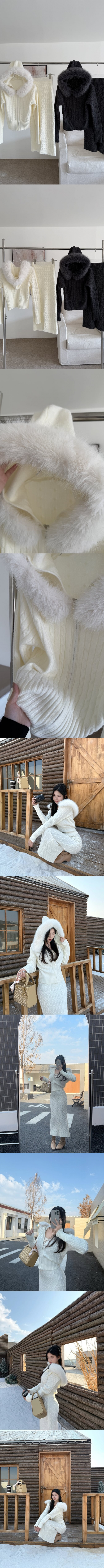 【Z830069】毛領連帽麻花針織裙套裝