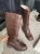 參考範例: 直播主 思思 158cm/42kg 胸圍30吋(77cm) 腰圍24.5吋(62cm) 臀圍32吋(81cm) 商品皆平量(cm) 085 跟高3.5 靴口圍34-40 筒高35 小腿圍30-36 腳踝圍24-28 前腳寬10