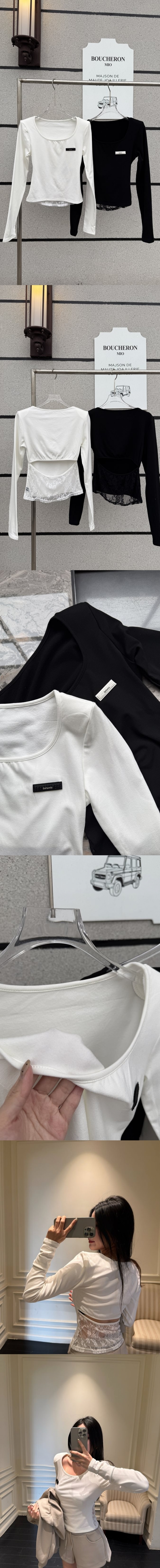 【Z830073】露腰縷空蕾絲拼接磨毛長袖