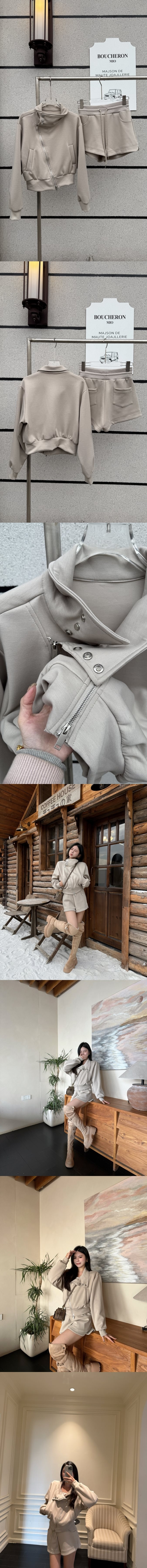 【Z830078】大立領斜拉鍊外套短褲套裝