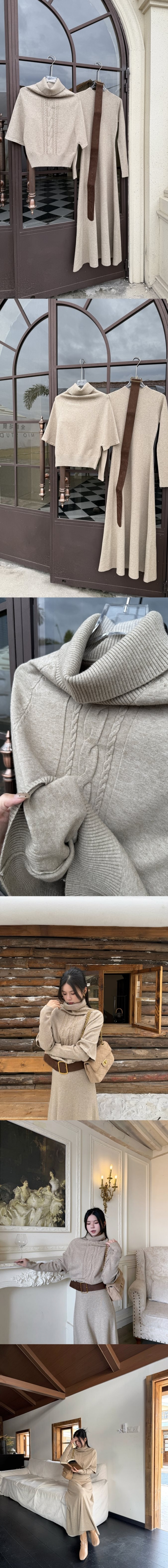 【Z830095】高領麻花斗篷針織連身裙套裝
