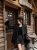 【Z830051】毛毛袖大翻領綁帶收腰皮外套
