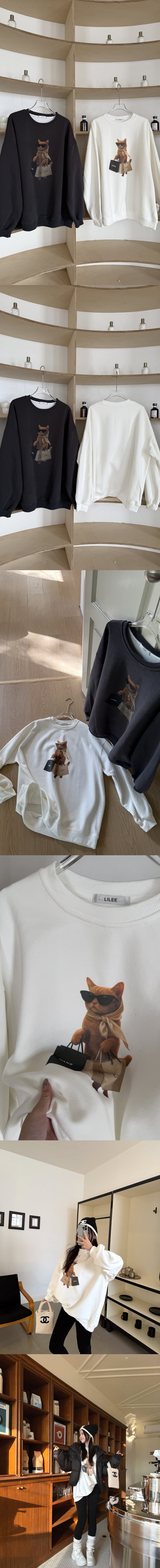 【Z830097】高貴墨鏡貓咪印花圓領長T