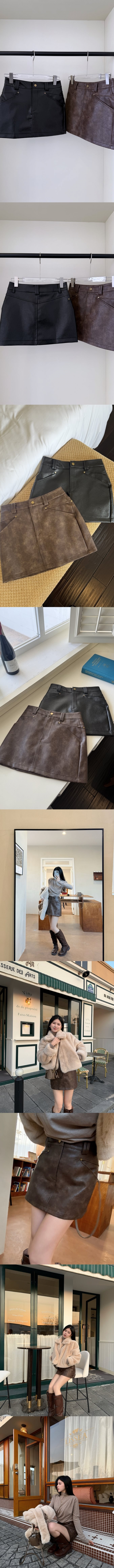 【Z830148】甜酷風復古PU皮短裙