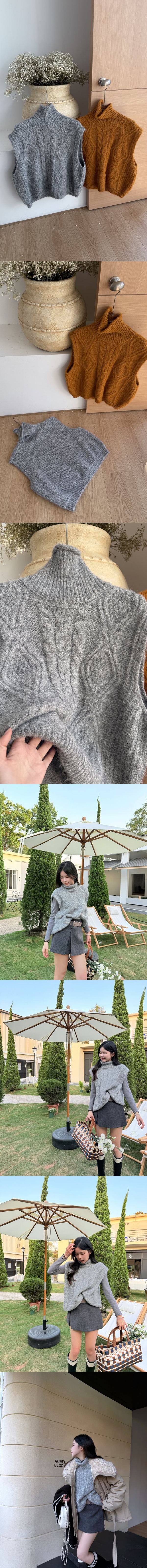 【Z830171】韓系復古粗針編織高領針織背心