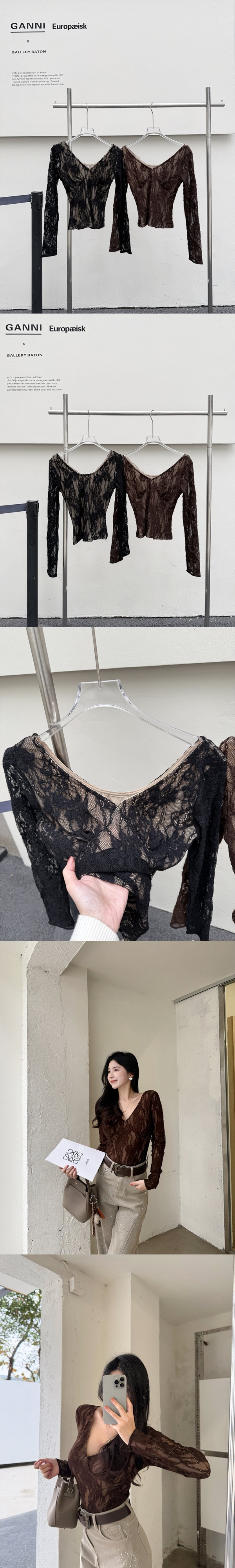 【Z830270】深V領蕾絲勾花露背上衣