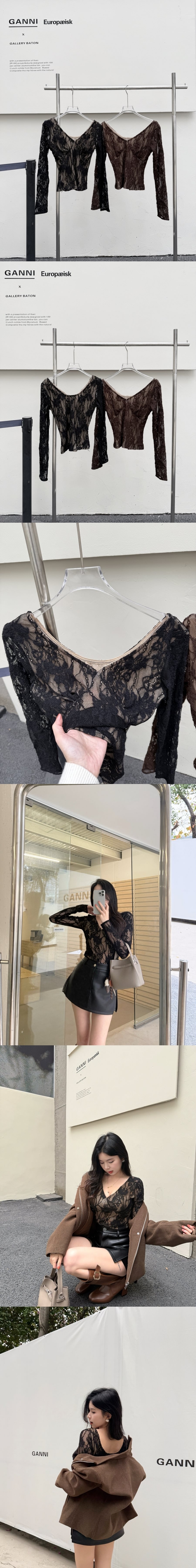 【Z830270】深V領蕾絲勾花露背上衣