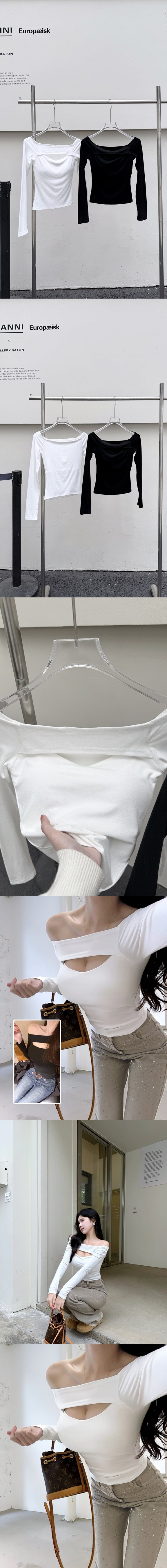 【Z830271】性感簍空一字肩修身長T