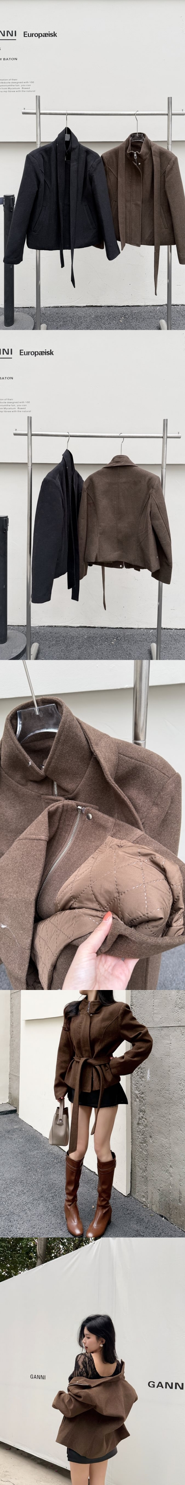 【Z830278】老錢風立領綁帶毛呢鋪棉外套