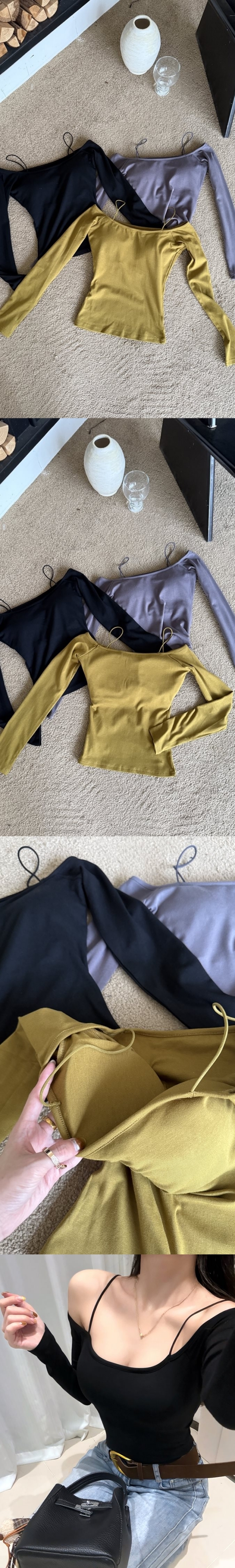 【Z830337】韓系性感一字肩吊帶長T