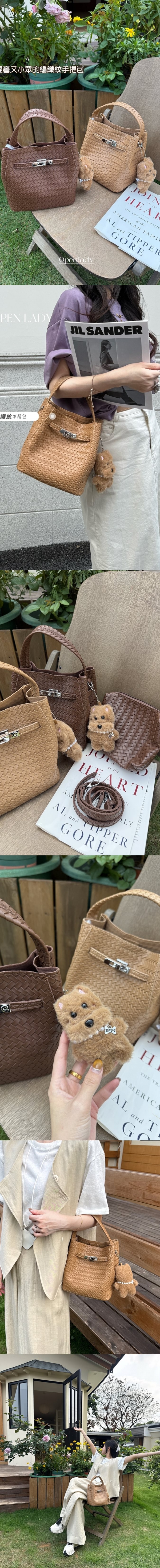 【Z830409】軟皮編織紋鎖釦子母小方包
