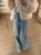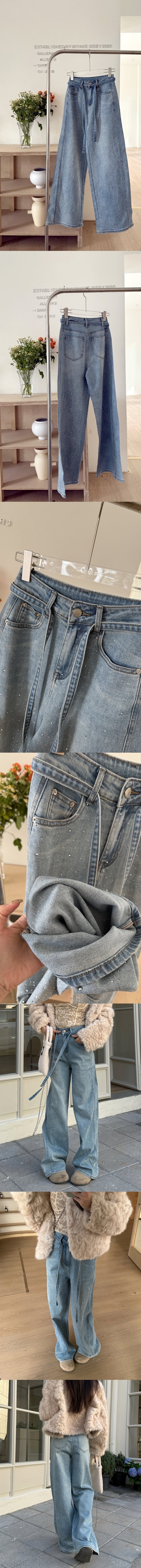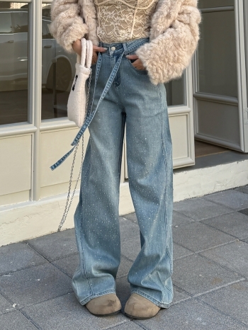 【Z830414】雙面滿鑽綁帶闊腿牛仔褲