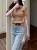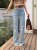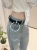 【Z830478】明線拼接設計感口袋闊腿牛仔褲(附腰帶)