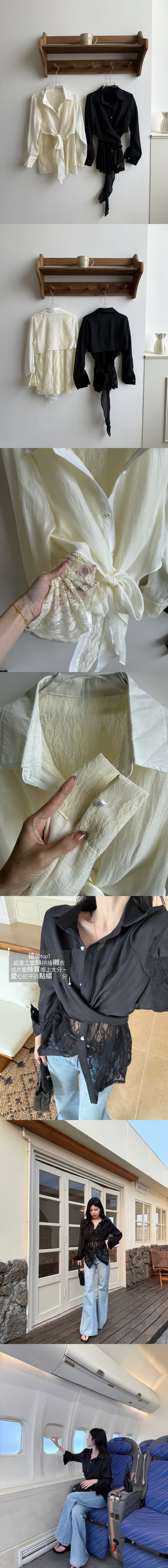 【Z830493】法式蕾絲拼接繫帶長袖襯衫