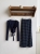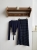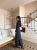 【Z830488】交叉V領綁帶長袖條紋長裙套裝