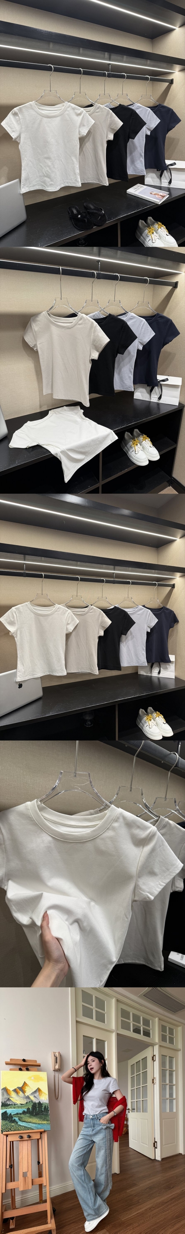 【Z830625】正肩純色休閒圓領短T