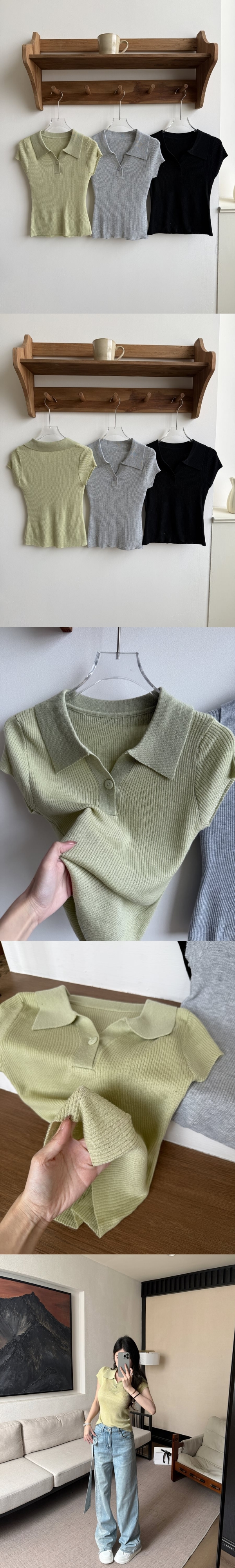 【Z830495】翻領單釦彈力羅紋針織短袖