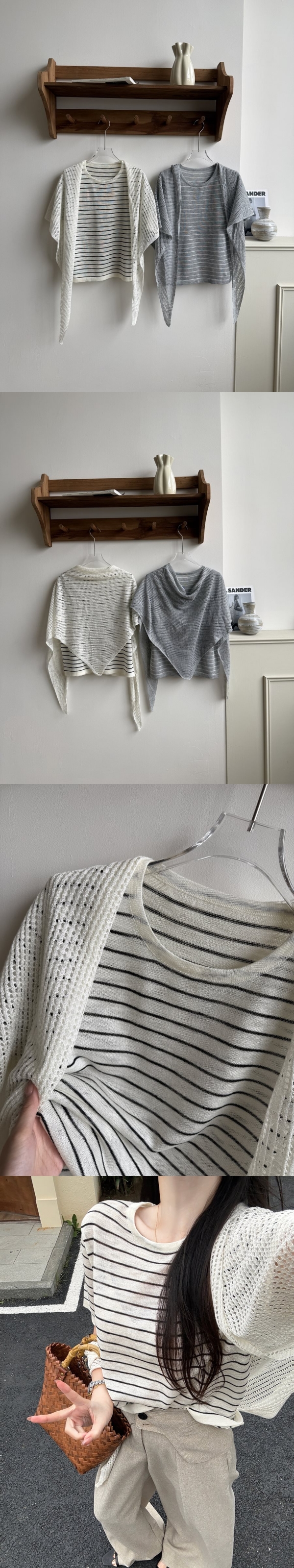【Z830585】縷空披肩+條紋針織短袖兩件套