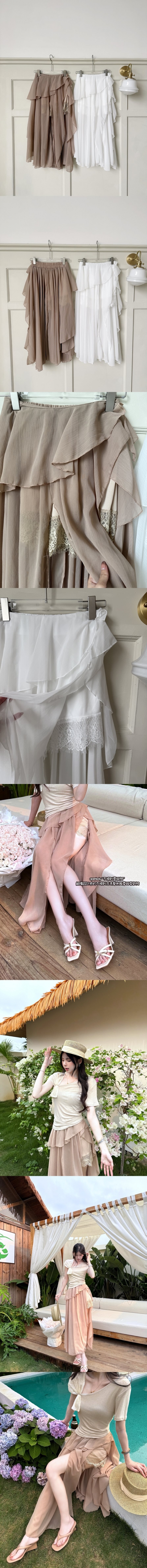 【Z830571】絕美不規則荷葉邊蕾絲雪紡裙